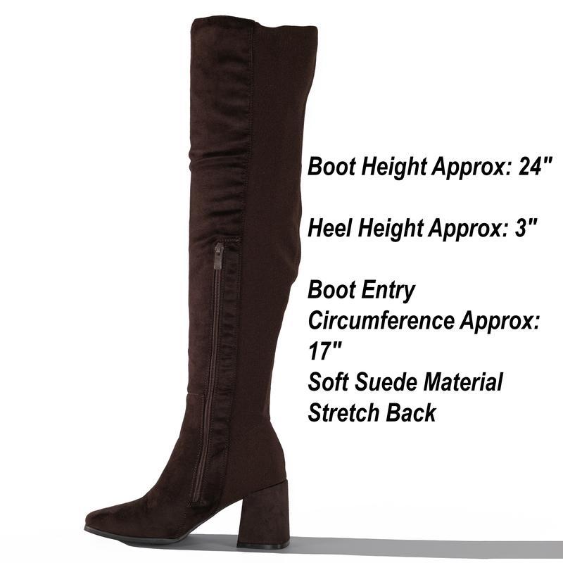 The block spur adds stability, making these boots suitable for longer wear during outings or events. Their over the knee style provides a statement look without excessive embellishment, making them a wardrobe crucial for seasonal styling. Whether you are dressing up for an evening gathering or styling a casual outfit, these boots deliver a fashionable and adaptable footwear option.
