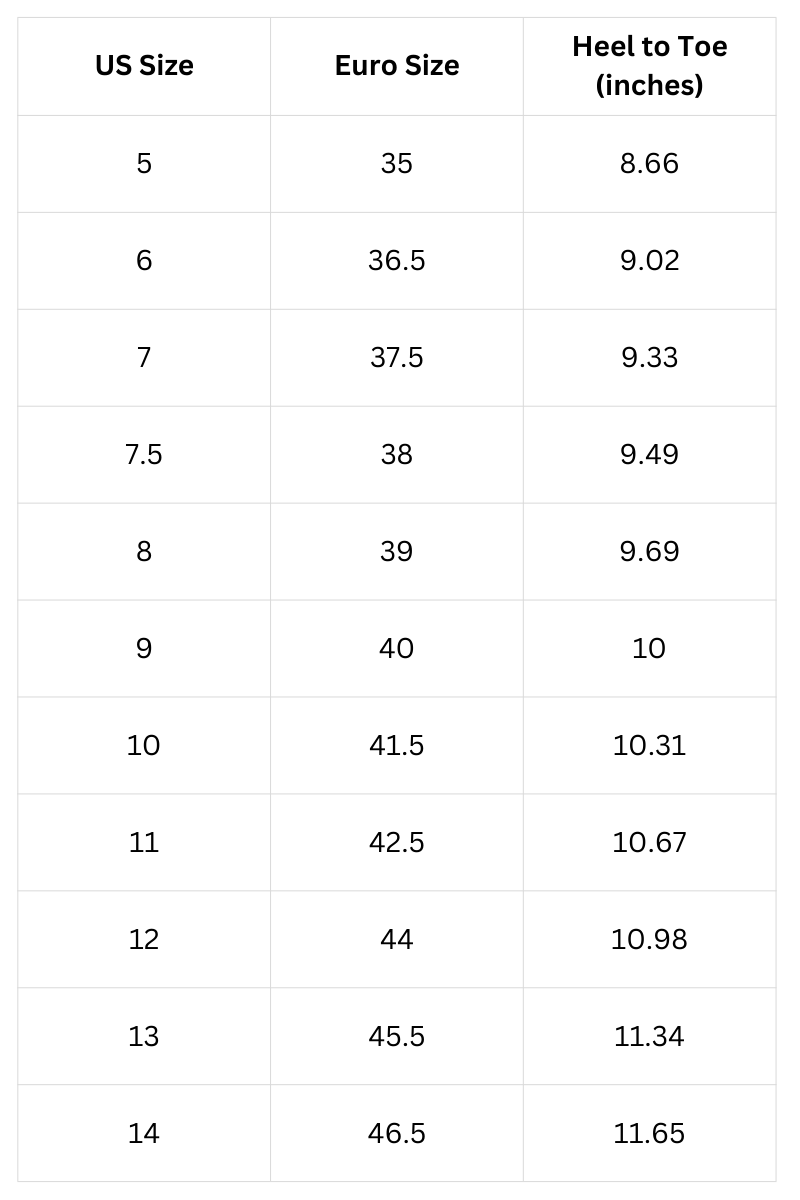 Size Chart (Inches):